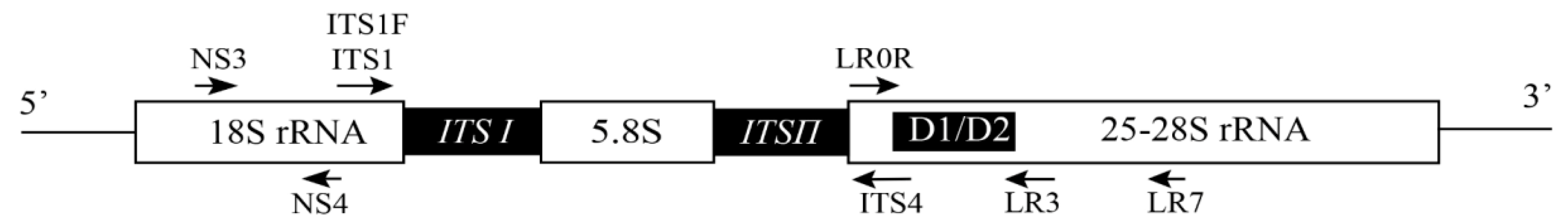 ACT, TUB2, CAL, GAPDH, GS, and ITS |