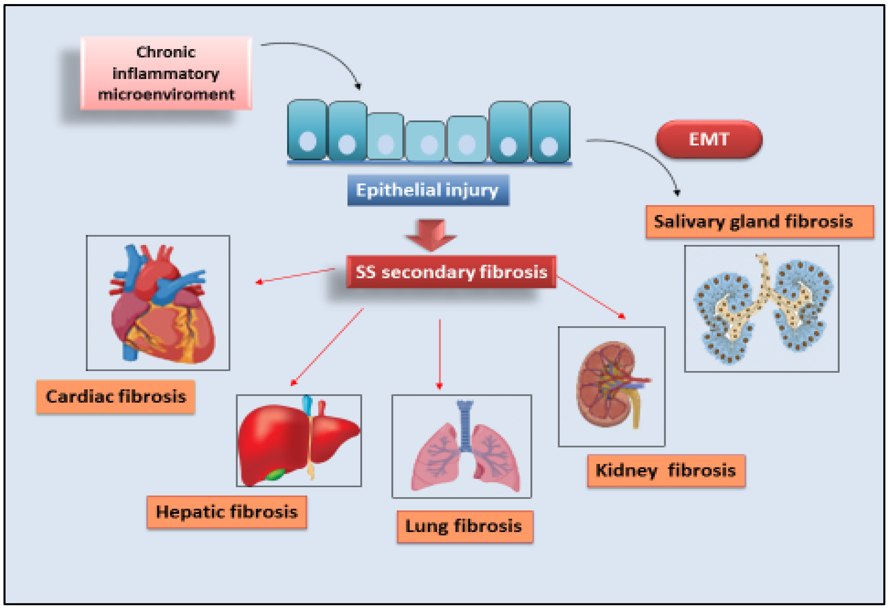 A schematic representation of all the identified secondary fibrosis in SS is shown in Figure 2.