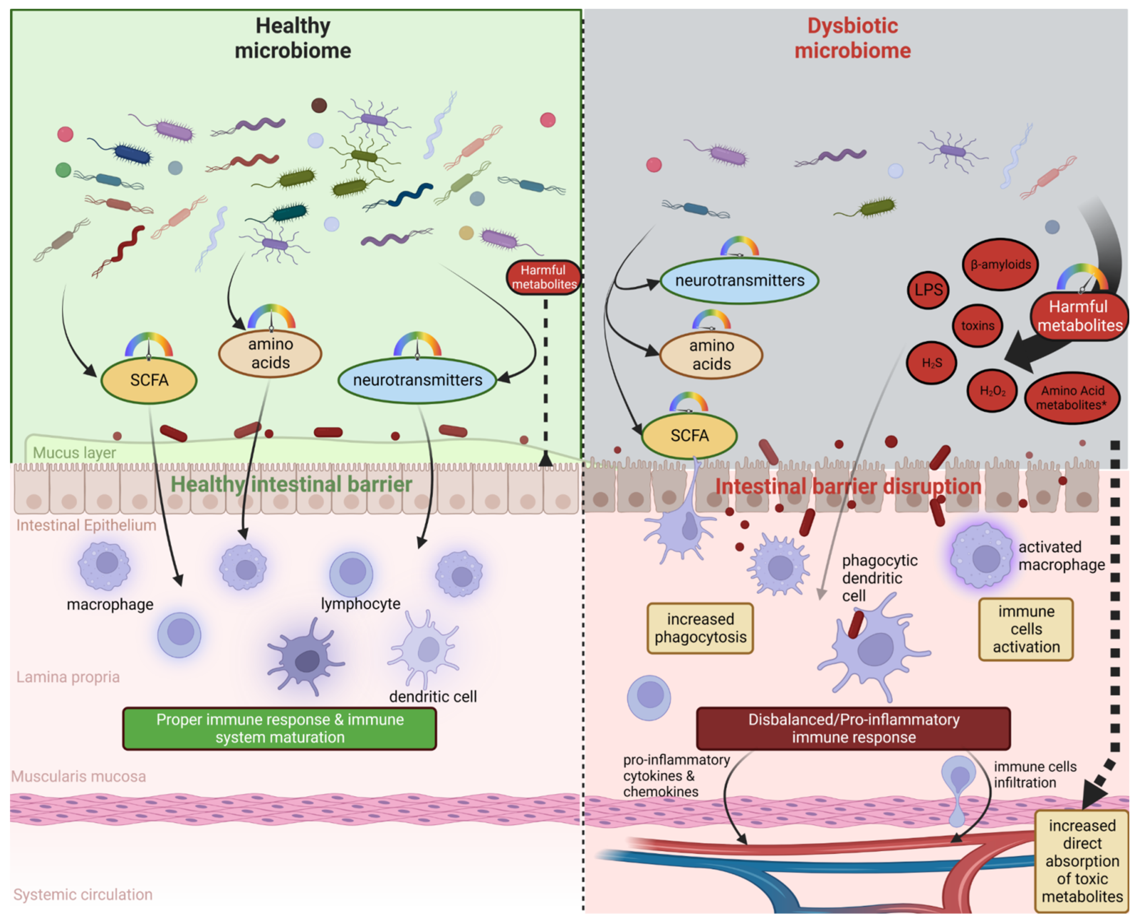[38]. It has been confirmed that gut dysbiosis can augment intestinal permeability and bacterial translocation, causing an over-response of the immune system and the subsequent systemic/central nervous system inflammation