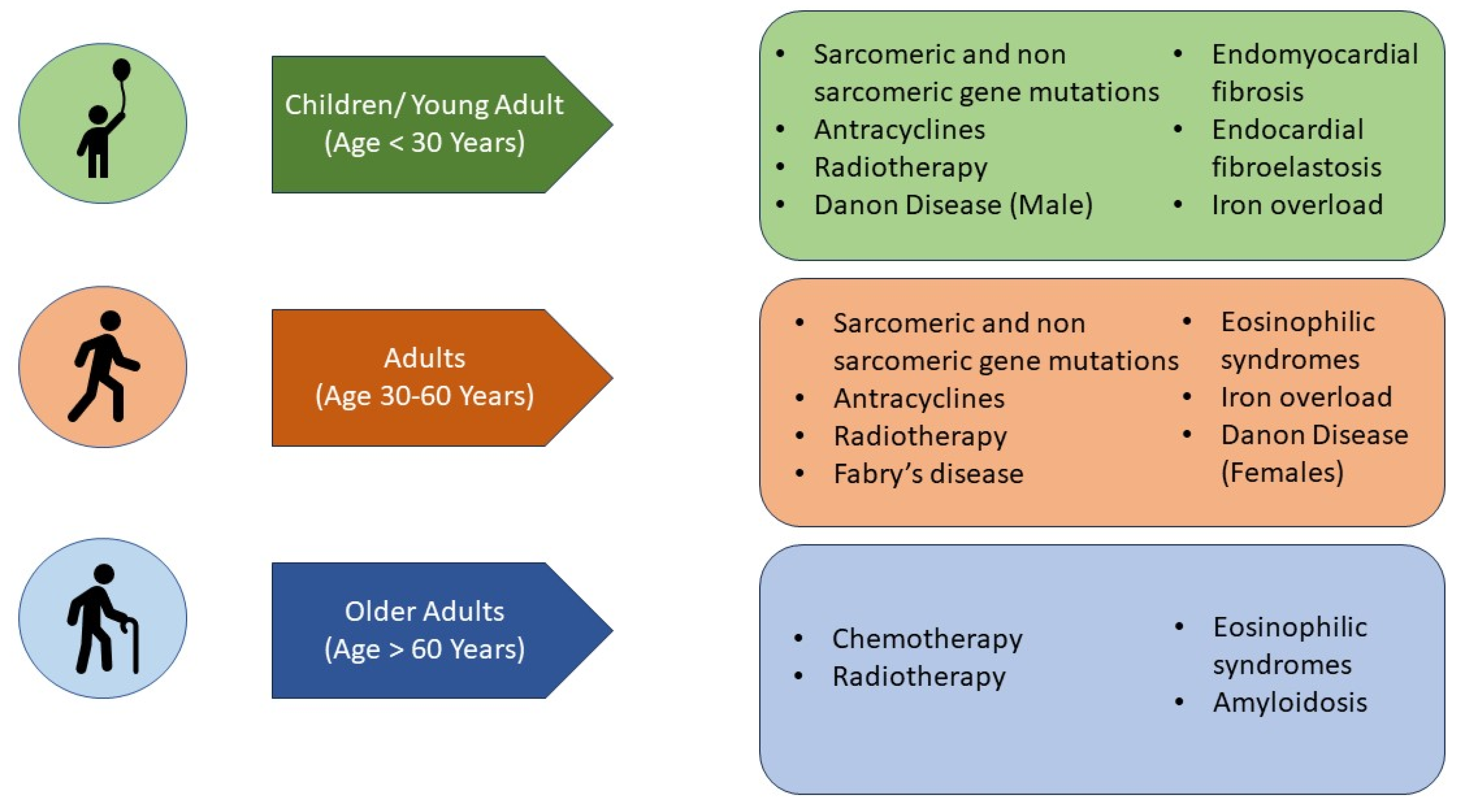 Figure 4. Main aetiologies of restrictive cardiomyopathy according to the age of disease presentation.