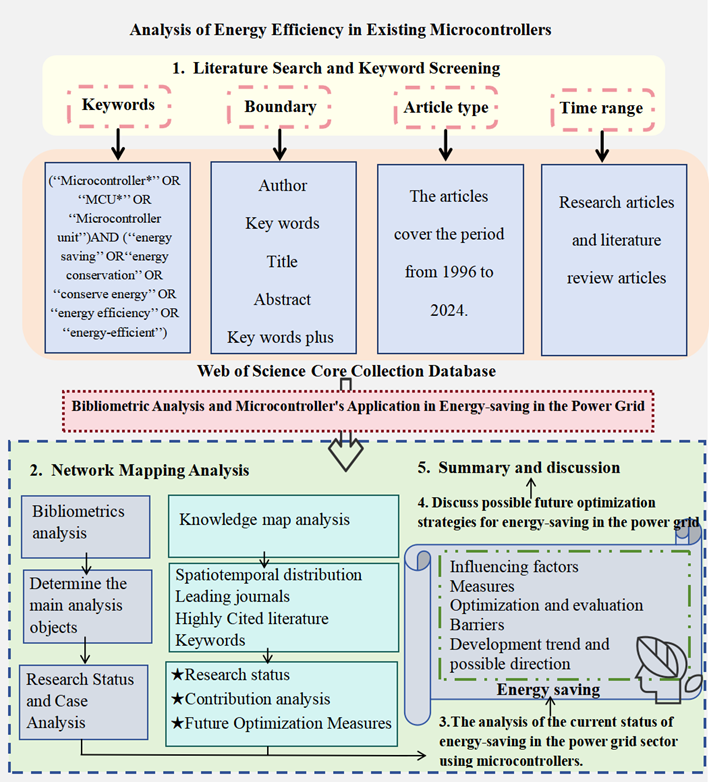 Therefore, this paper adopts a research methodology combining bibliometric analysis and case study analysis. First, through bibliometric analysis based on the Web of Science database, this paper selects literature related to microcontroller-based energy saving and conducts an analysis of its temporal and spatial distribution, keyword indexing, and highly cited papers. This approach helps trace the development of microcontroller energy-saving research and reveals the research hotspots and trends in this field. Additionally, the paper uses case studies to delve into the applications of microcontrollers in fields such as industrial control, smart agriculture, and Internet of Things (IoT) devices. It analyzes the mechanisms and technological pathways through which microcontrollers achieve energy savings in different scenarios and further examines their applications in the power grid sector. Finally, recommendations are provided for the application of microcontrollers in the energy-saving domain. The aim of this research is to serve as a reference for the further development of microcontroller technology in the field of energy saving.
