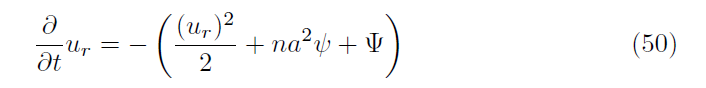 In [15], inviscid axisymmetric flow on the equatorial plane is considered. The continuity equation is written as