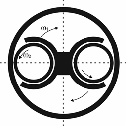 Planetary activator mills are a specific development of the concept of ball mills. In this type of equipment, the reservoirs for grinding are secured to a frame and rotate around a common axis. Meanwhile, the reactors rotate around their axes in a direction opposite to that of frame rotation (Figure 4).