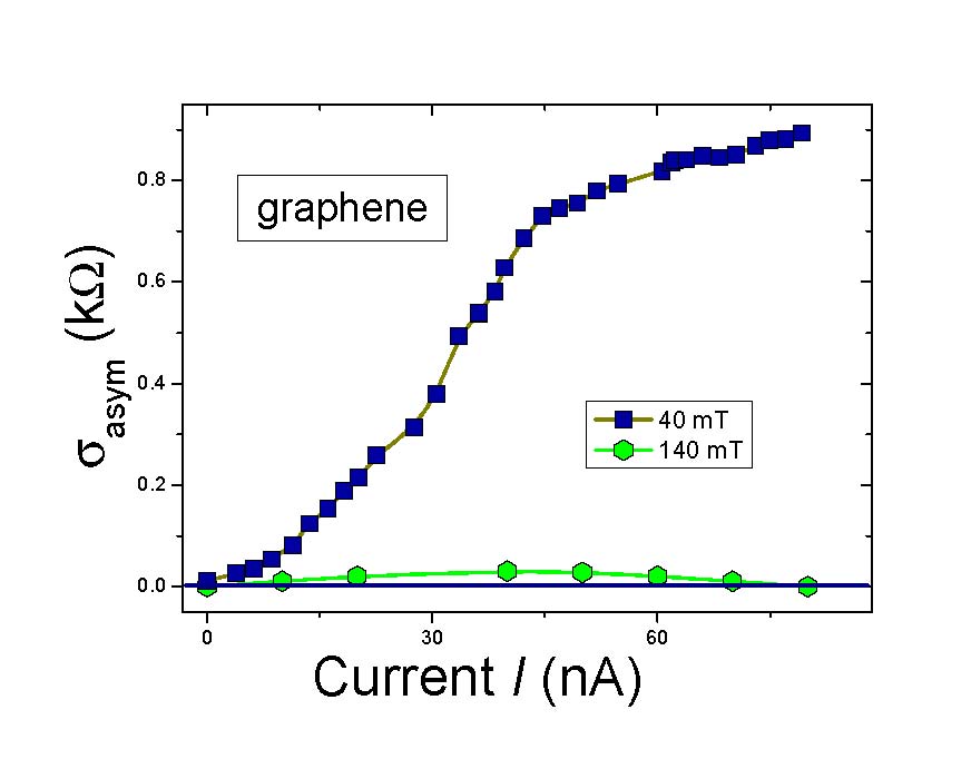 (kΩ)=dV/dI(I)−dV/dI(−I) is extracted from experimental data, obtained in measurements on graphene