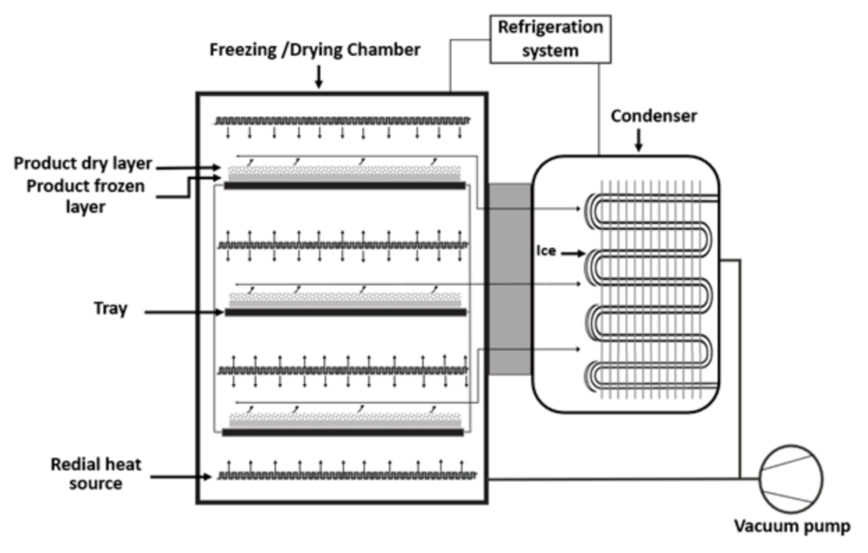 Figure 42. Schematic diagram of the freeze-drying process (self-developed, the concept was adopted from [39,46][18][25]). Reproduced with permission from [46][25]. Copyright Elsevier, 2016.