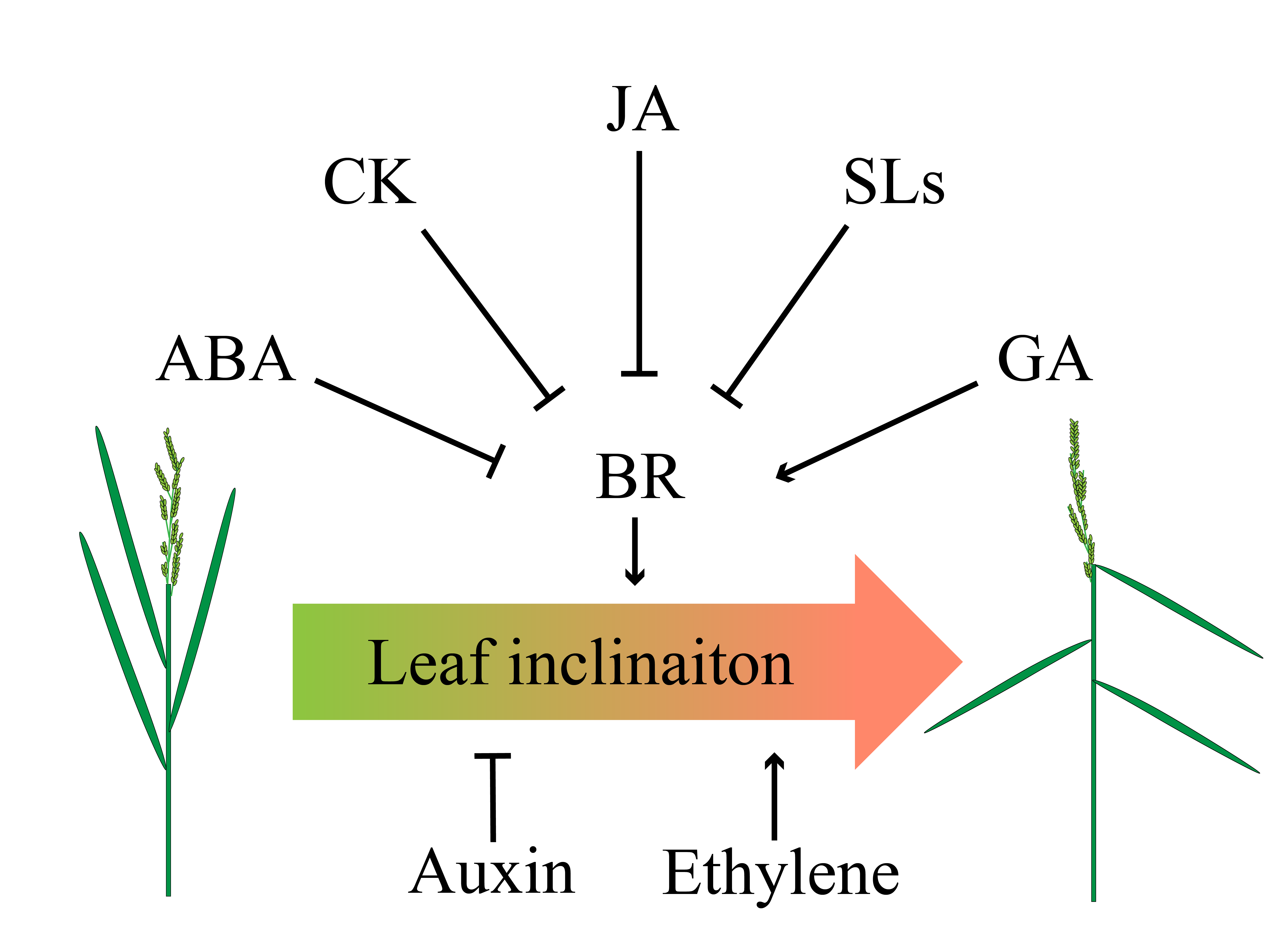 It has been elucidated that brassinosteroid (BR) plays a dominant role in determining LA, and other phytohormones also positively or negatively participate in regulating LA. Accumulating evidences have revealed that these phytohormones interact with each other in modulating various biological processes. However, the comprehensive discussion of how the phytohormones and their interaction involved in shaping LA is relatively lack. Here, we intend to summarize the advances in the LA regulation mediated by the phytohormones and their crosstalk in different plant species, mainly in rice and maize, hopefully providing further insights into the genetic manipulation of LA trait in crop breeding and improvement in regarding to overcoming the challenge from the continuous demands for food under limited arable land area.