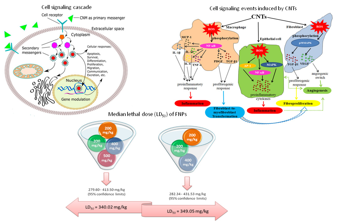 in vivomodels has claimed that some members of the carbon nanomaterial family, besides being genotoxic, also proved to induce oxidative damage, inflammation, and activate different cell signalling pathways that can result in different cellular responses. The size distribution, charge, different synthesis methods, and surface modifications play an essential role in deciding the fate of CNMs in