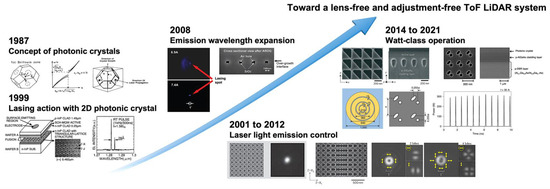 Figure 69. Development progress of PCSEL technology toward an ultracompact ToF LiDAR system [8][9][18][19][30][37][39][40][51][62][71].