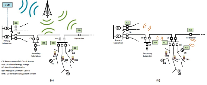 Figure 5. Distributed Monitoring (a4) G LTE, (b) 5G Technology [75,79].