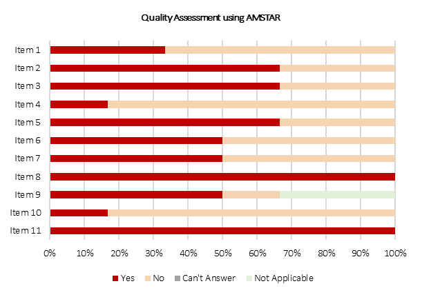 Figure 16. Quality assessment on six included review works (systematic review) using AMSTAR appraisal tool.