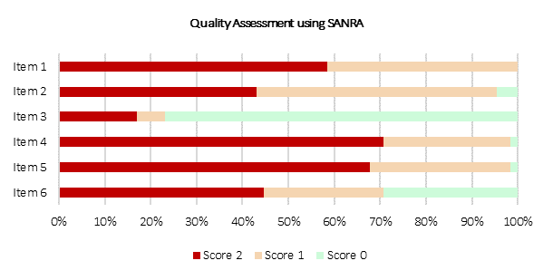 Figure 17. Quality assessment on 65 included review works (non-systematic review) using SANRA appraisal tool.