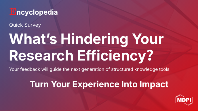 Encyclopedia MDPI is conducting a targeted survey to identify the specific barriers hindering efficient research. We invite you to spend 3 minutes defining the priorities for our next generation of structured knowledge tools: 2026 Academic Encyclopedia Survey