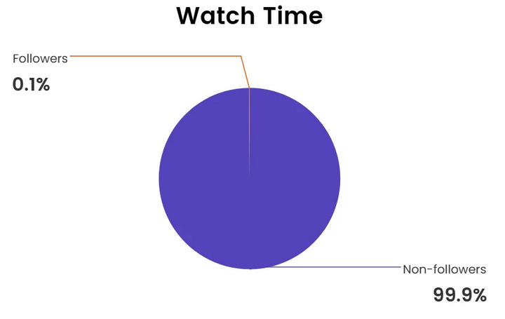 Total viewership for this VA amounted to 12 days and 5 hours (293 hours in total), distributed as shown in the chart above. Besides, the watch time distribution (Figure 11) reveals a critical insight: the audience composition suggests that the vast majority of views originated from non-followers, highlighting the VA’s effectiveness in reaching new viewers and expanding content discoverability.