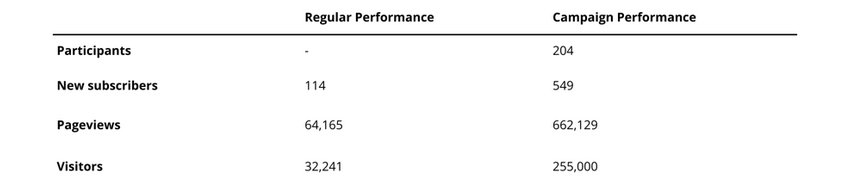 Pageviews increased by ~930% and Visitors by ~690%, indicating highly effective audience reach.