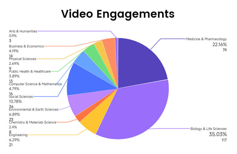 Figure 4. Distribution of video engagements by academic discipline. Biology and Medicine showed noticeably higher engagement compared to other disciplines. All data was obtained from Encyclopedia.