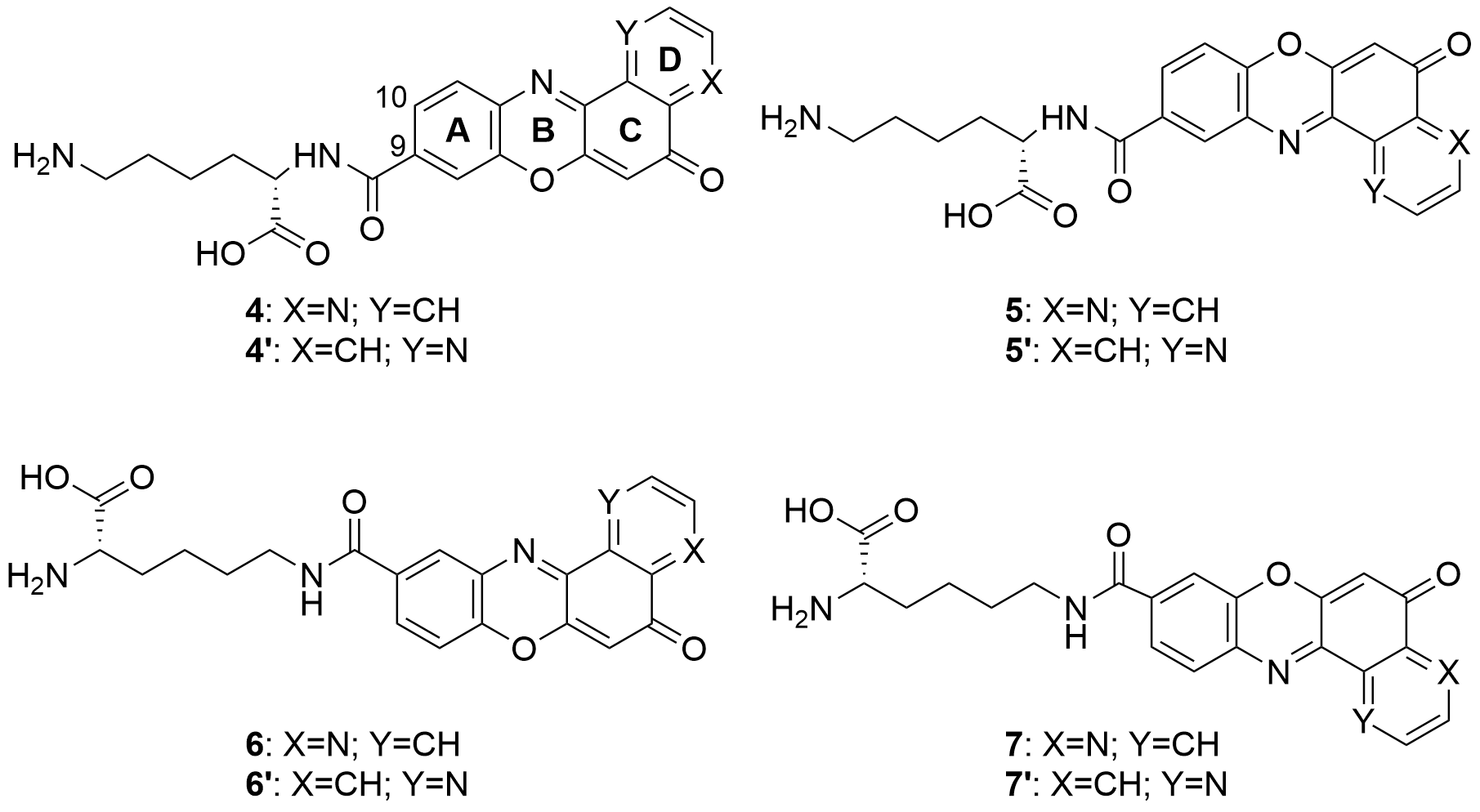 Figure 6. Structure of the pyridophenoxazinone derivatives conjugated to L-lysine.