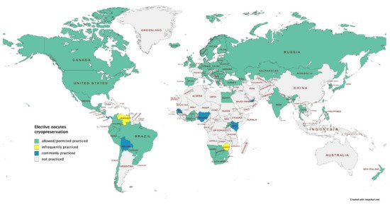 Figure 1. Elective oocytes cryopreservation: worldwide map (data provided by International Federation of Fertility Societies’ Surveillance [4], created with Mapchart.net).