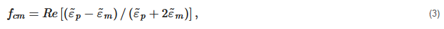 where εm is the medium dielectric constant, Vp is the particle volume, and fcm is the Clausius–Mossotti factor. The parameter, fcm, is a factor that compares the relative contribution of particle and medium properties to the force acting on the particle. This contribution is as follows: