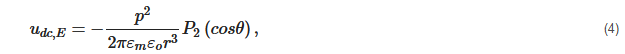 where p=3εmεoVpfcmE is the dipole moment of the particle pair, r is the center-to-center separation distance between particle pairs, P2 is a Legendre polynomial of order two, and θ is the angular orientation of the particle pair with respect to the direction of the applied electric field. The force representation of Equation (4) is [78]: