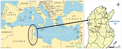 Figure 2. The geographical localization of the eight M. tunetana accessions