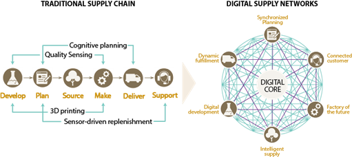 Figure 1. Schematic of traditional supply chain vs. new digital supply networks Adapted from [5]