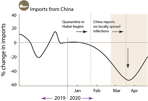 Figure 4. The behavior of imports of the U.S. from China during winter 2019 and spring 2020 Adapted from [22].