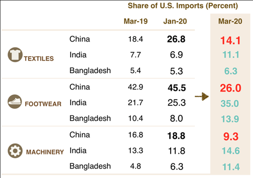 Table 1. China market share of textiles, footwear and machinery in march 2020 Adapted from [22].