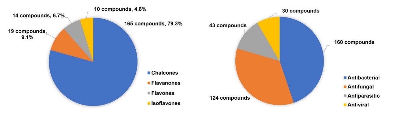 Figure 4. Distribution of the flavonoid hybrids according to the reported antimicrobial activity.