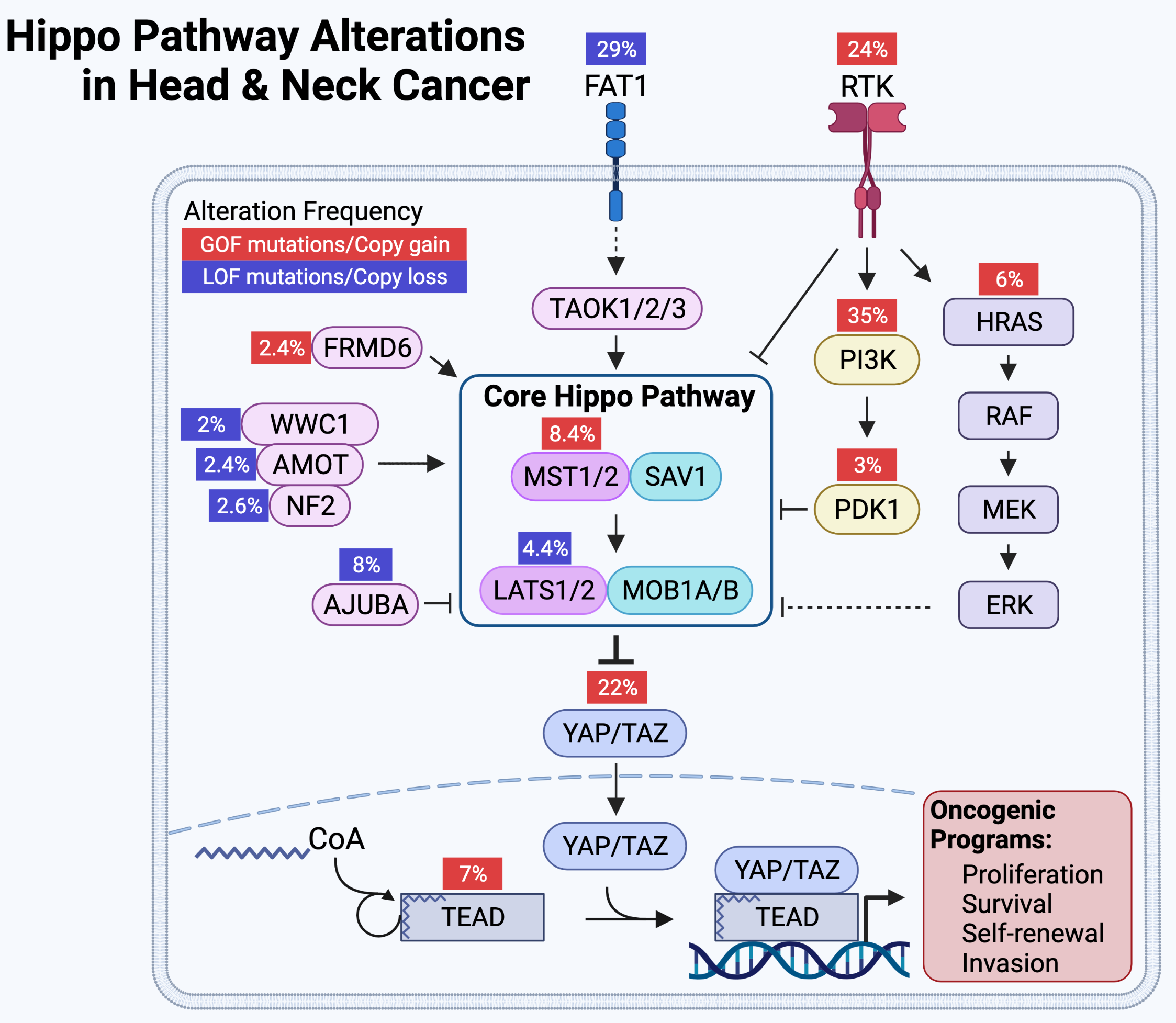 Disruption in core Hippo signaling has been shown to induce HNSCC in model systems. Genetic deletion of