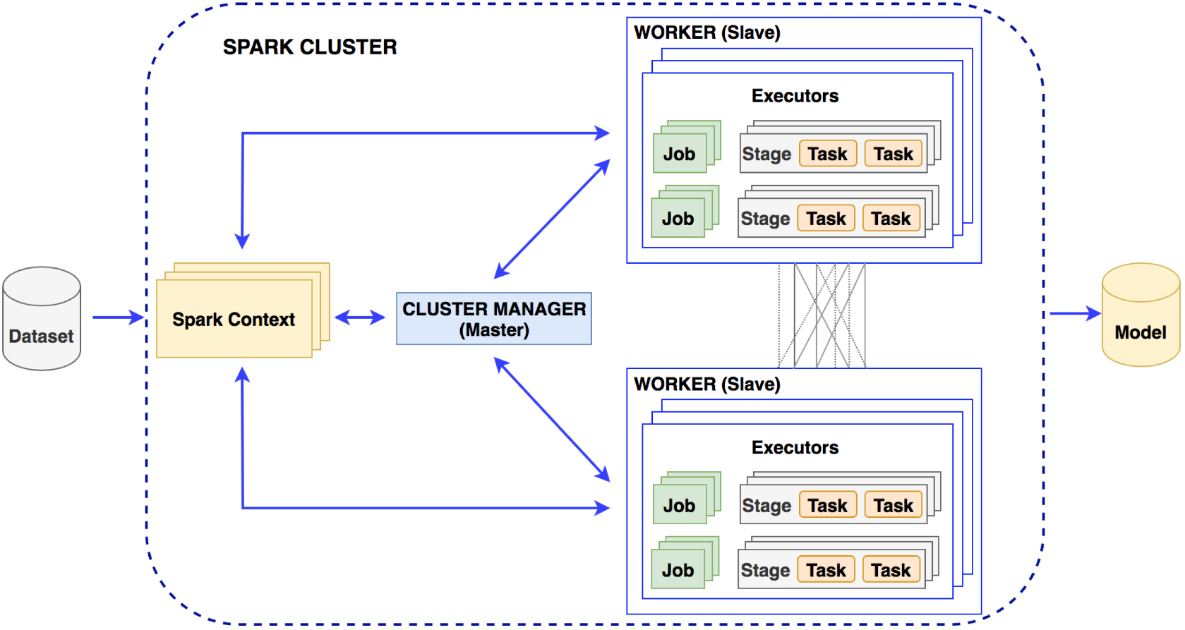 Training phase: In this phase, researchers perform feature extraction on the input dataset and then train machine-learning models. Model training is performed in a distributed environment and stores the trained model on distributed file systems (Figure 2). Researchers build machine-learning models with the extracted feature dataset.