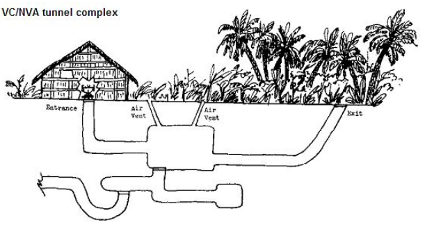 Permanent and semi-permanent bases form part of the guerrilla logistical structure, which are usually located in remote areas or in cross-border sanctuaries that are sheltered by friendly regimes.[8][11] They can be quite elaborate, such as in the tough VC/NVA fortified base camps and tunnel complexes encountered by US forces during the Vietnam War. Their importance can be seen by the hard fighting sometimes engaged in by communist forces to protect those sites. However, when it became clear that defence was untenable, communist units typically withdrew without sentiment.