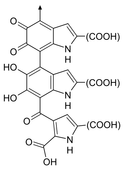 Eumelanin polymers have long been thought to comprise numerous cross-linked 5,6-dihydroxyindole (DHI) and 5,6-dihydroxyindole-2-carboxylic acid (DHICA) polymers.[4]