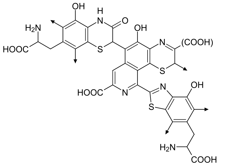 In chemical terms, pheomelanins differ from eumelanins in that the oligomer structure incorporates benzothiazine and benzothiazole units that are produced,[8] instead of DHI and DHICA, when the amino acid L-cysteine is present.