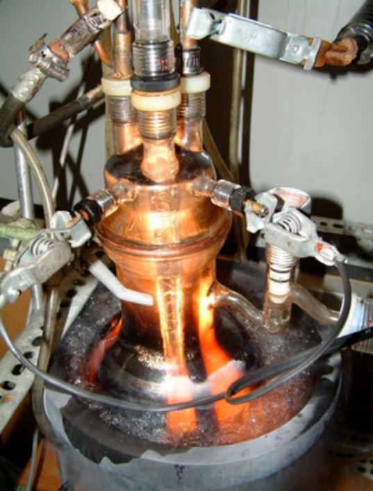 One method of synthesis, developed by Phil Shevlin has done the principal work in the field., is by passing a large current through two adjacent carbon rods, generating an electric arc. The way this species is made is closely related to the formation of fullerenes C60, the chief difference being that a much lower vacuum is used in atomic carbon formation.