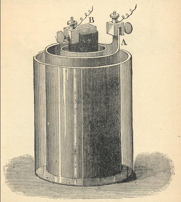 Volta was the inventor of the voltaic pile, the first electrical battery. In common usage, the word "battery" has come to include a single galvanic cell, but a battery properly consists of multiple cells.[1]