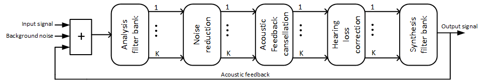 Figure 2 shows a general signal processing scheme in a hearing aid application.