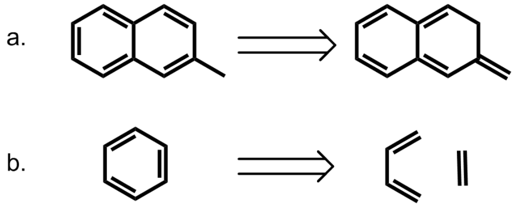 A more direct approach to modeling the role of aromaticity was taken by Bloom and Wheeler.[17] The authors compared the interactions between benzene and either 2-methylnaphthalene or its non-aromatic isomer, 2-methylene-2,3-dihydronaphthalene. The latter compound provides a means of conserving the number of p-electrons while, however, removing the effects of delocalization. Surprisingly, the interaction energies with benzene are higher for the non-aromatic compound, suggesting that pi-bond localization is favorable in pi stacking interactions. The authors also considered a homodesmotic dissection of benzene into ethylene and 1,3-butadiene and compared these interactions in a sandwich with benzene. Their calculation indicates that the interaction energy between benzene and homodesmotic benzene is higher than that of a benzene dimer in both sandwich and parallel displaced conformations, again highlighting the favorability of localized pi-bond interactions. These results strongly suggest that aromaticity is not required for pi stacking interactions in this model.
