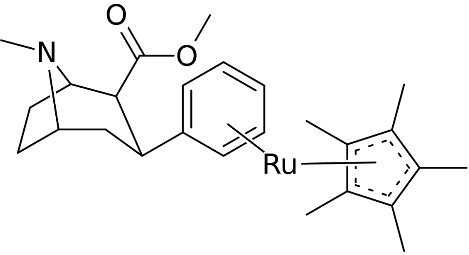 Several variants of pi coordinated phenyls have even been tested using transition metals for stacking η6-phenyltropanes, using cyclopentadienyl and tricarbonyl in place of a benzene. Which in the case of the tricarbonyl doubled the compound's affinity for its intended ligand site (posited as due to resultant electrostatic influences being more conducive to the target).[21]