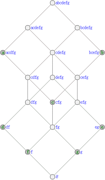 In any partial order, the lower sets form a lattice in which the lattice's partial ordering is given by set inclusion, the join operation corresponds to set union, and the meet operation corresponds to set intersection, because unions and intersections preserve the property of being a lower set. Because set unions and intersections obey the distributive law, this is a distributive lattice. Birkhoff's theorem states that any finite distributive lattice can be constructed in this way.
