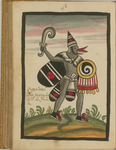 Quetzalcoatl—he was the wind, the guide and road sweeper of the rain gods, of the masters of the water, of those who brought rain. And when the wind rose, when the dust rumbled, and it crack and there was a great din, became it became dark and the wind blew in many directions, and it thundered; then it was said: "[Quetzalcoatl] is wrathful."[2]