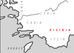 Pisidia (/pɪˈsɪdiə/; Greek: Πισιδία, Pisidía; Turkish: Pisidya) was a region of ancient Asia Minor located north of Lycia, bordering Caria, Lydia, Phrygia and Pamphylia, and corresponding roughly to the modern-day province of Antalya in Turkey. Among Pisidia's settlements were Antioch(ia) in Pisidia, Termessos, Cremna, Sagalassos, Etenna, Neapolis, Selge, Tyriacum, Laodiceia Katakekaumene and Philomelium.