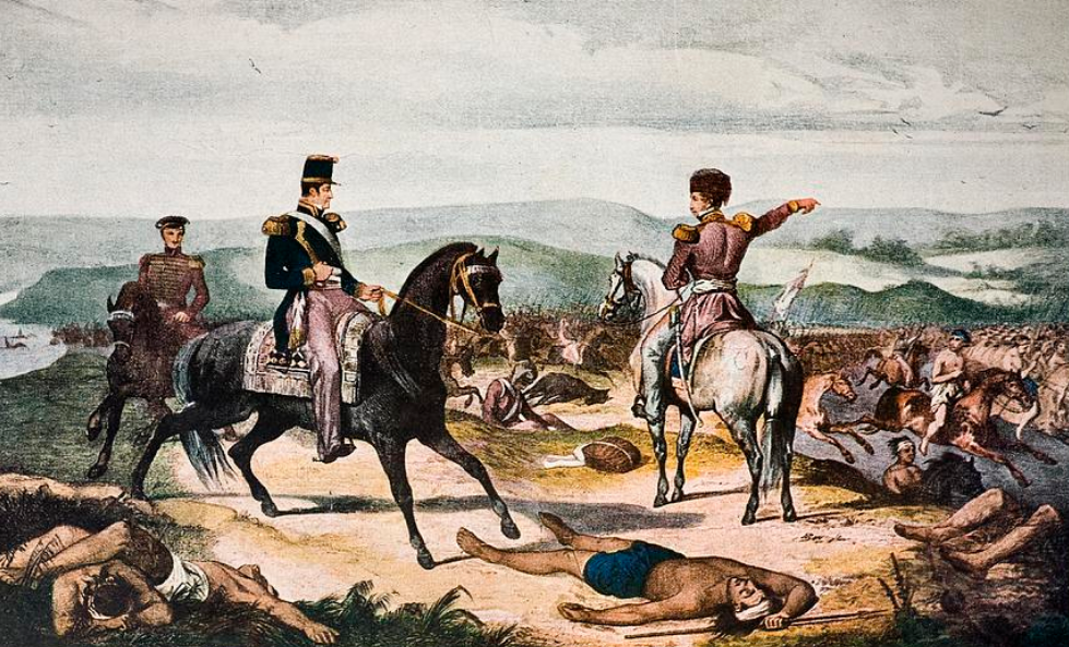 Meanwhile, Brazil, now ascendant under Emperor Dom Pedro II, provided support to the Uruguayan government that still held out in Montevideo, as well as to the ambitious Justo José de Urquiza, a caudillo in Entre Ríos who rebelled against Rosas. Once one of Rosas' most trusted lieutenants, Urquiza now claimed to fight for a constitutional government, although his ambition to become head of state was barely disguised. In retaliation, Rosas declared war on Brazil on 18 August 1851, beginning the Platine War.(Bethell, 1993) The army under Oribe in Uruguay surrendered to Urquiza in October. With arms and financial aid given by Brazil, Urquiza then marched through Argentine territory heading to Buenos Aires.(Bassi, 1942)