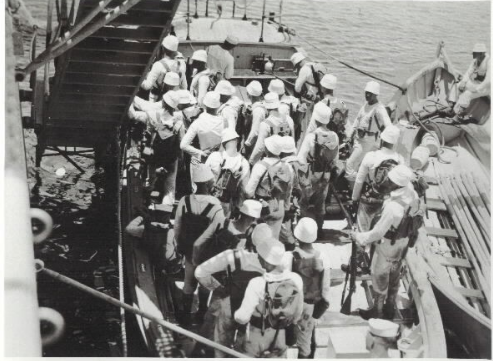 Landing Craft Infantry (Small) LCI(S) is a British infantry carrier design. The wooden hull design is like the LCS(L). Troops unloaded on four bow ramps. The LCI(S) transported six officers and 96 troops below deck. The LCI(S) has a range of 550 miles at 15 knots, top speed, and 700 miles at 12 knots. LCI(S) has a length of 105 feet, are 63 tons light, and 100 tons loaded. The beam is 21 feet, and draft 2 feet 10 inches forward and 3 feet 8 inches aft. with loaded. The craft is armed with: Two 20 mm guns. (some added two or more 20 mm guns); two .303 Lewis guns. For armor DIHT plating was added to the deck, sides, gun positions, generator house, and forward bulkhead. The ship had a crew of: Two officers and 15 men with housing. Powered by two Hall-Scott gasoline engines with 1,120 hp. Some were had 1,500 hp. with supercharger. The engines powered twin screws with silencers. Craft stored up to 4,000 gallons of gasoline. [102][103]
