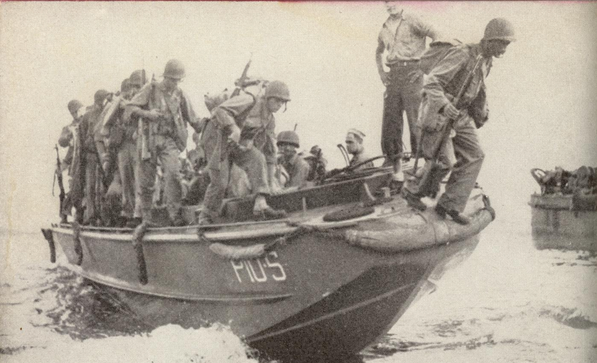 Before the LCVP, Andrew Higgins first ramped landing craft was the Landing Craft, Personnel (Ramped) or LCP(R). The Landing Craft, Personnel (Ramped) could take 30 to 36 troops or 6,700 to Or 8,100 lb. of cargo to a beach. Landing Craft, Personnel (Ramped) are 35 feet 10 inches long and a beam of 10 feet 9 inches, and a draft of 2 feet 6 inches aft. The top speed is 11 knots with a range of 80 to 200 miles. They were armed with two .30 cal. 303 Lewis gun and has a crew of 3. The LCP(R) was used in beach landing on North Africa, Guadalcanal, Salerno, and Tarawa. By D-day the very similar LCVP had replaced the Landing Craft, Personnel (Ramped).[90]