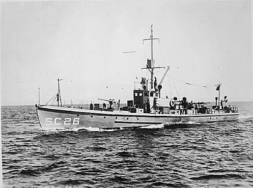 Submarine chasers (hull designation "SC") were built to combat the threat U-boats put on merchant convoys as they departed American ports to support the Allies. These are wooden 110-foot (34 m) and 98 tons boats used in anti-submarine warfare. By the time the war ended 438 sub chasers had been launched and commissioned. US Navy boats were armed with one 3"/50 caliber gun, one Bofors 40 mm gun, three Oerlikon 20 mm cannons, two rocket launchers, four K-guns and Mousetraps and two depth charge racks. By the end of World War II, submarine chasers had sunk around 67 German U-boats. Submarine chasers, destroyers, destroyer escorts and Anti-submarine aircraft has ended the U-boat as a major threat in the Battle of the Atlantic. Theodore R. Treadwell wrote a book called Splinter Fleet: The Wooden Subchasers of World War II in 2000 outlining the work of the 40,000 men that served on Submarine chaser in the open seas. Examples: USS SC-498 and USS SC-497.[1][2][3][4][5]