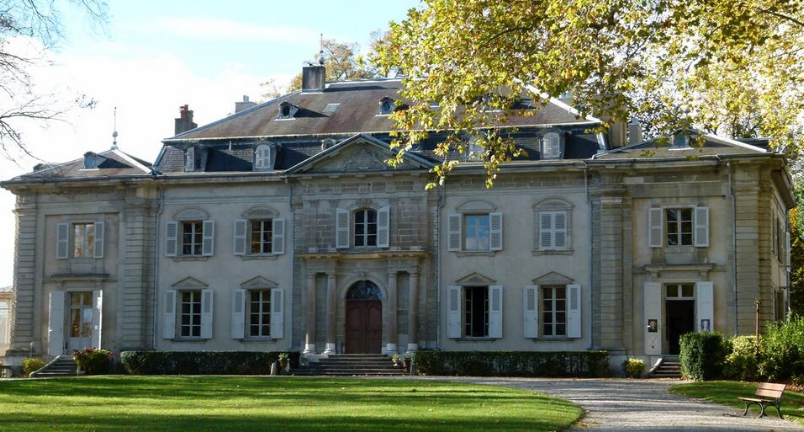 Voltaire's slow progress toward Paris continued through Mainz, Mannheim, Strasbourg, and Colmar,[82] but in January 1754 Louis XV banned him from Paris,[83] and he turned for Geneva, near which he bought a large estate (Les Délices) in early 1755.[84] Though he was received openly at first, the law in Geneva, which banned theatrical performances, and the publication of The Maid of Orleans against his will soured his relationship with Calvinist Genevans.[85] In late 1758, he bought an even larger estate at Ferney, on the French side of the Franco-Swiss border.[86]