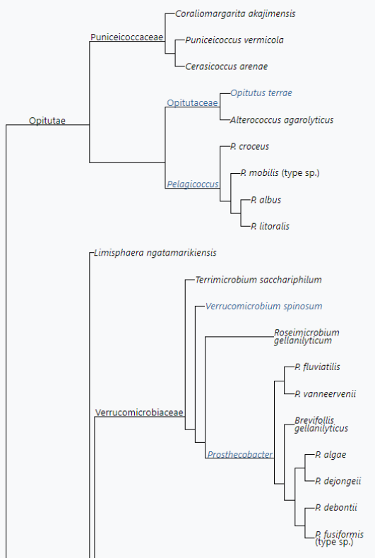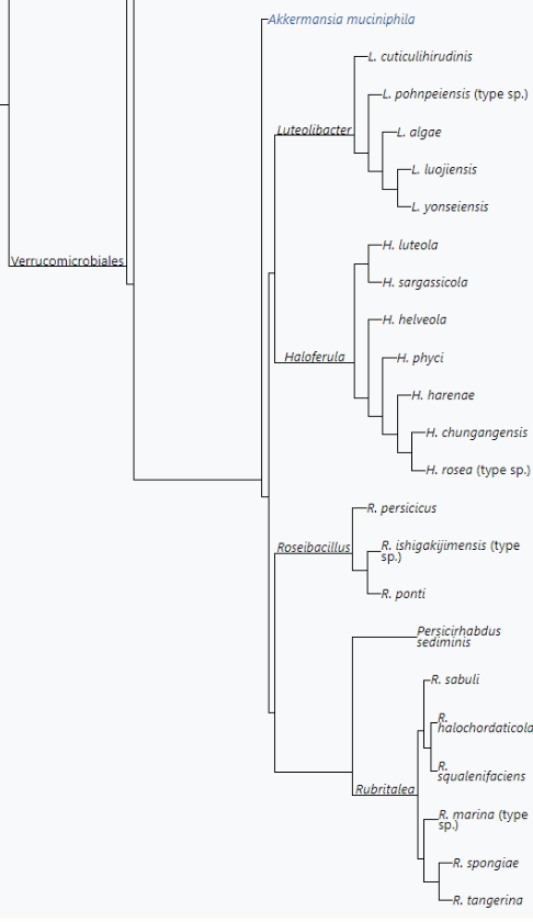 Verrucomicrobia is a phylum of Gram-negative bacteria that contains only a few described species. The species identified have been isolated from fresh water, marine and soil environments and human faeces. A number of as-yet uncultivated species have been identified in association with eukaryotic hosts including extrusive explosive ectosymbionts of protists and endosymbionts of nematodes residing in their gametes. Verrucomicrobia are abundant within the environment, though relatively inactive. This phylum is considered to have two sister phyla: Chlamydiae and Lentisphaerae within the PVC group. The Verrucomicrobia phylum can be distinguished from neighbouring phyla within the PVC group by the presence of several conserved signature indels (CSIs). These CSIs represent unique, synapomorphic characteristics that suggest common ancestry within Verrucomicrobia and an independent lineage amidst other bacteria. CSIs have also been found that are shared by Verrucomicrobia and Chlamydiae exclusively of all other bacteria. These CSIs provide evidence that Chlamydiae is the closest relative to Verrucomicrobia, and that they are more closely related to one another than to the Planctomycetales. Verrucomicrobia might belong in the clade Planctobacteria in the larger clade Gracilicutes. In 2008, the whole genome of Methylacidiphilum infernorum (2.3 Mbp) was published. On the single circular chromosome, 2473 predicted proteins were found, 731 of which had no detectable homologs. These analyses also revealed many possible homologies with Proteobacteria.