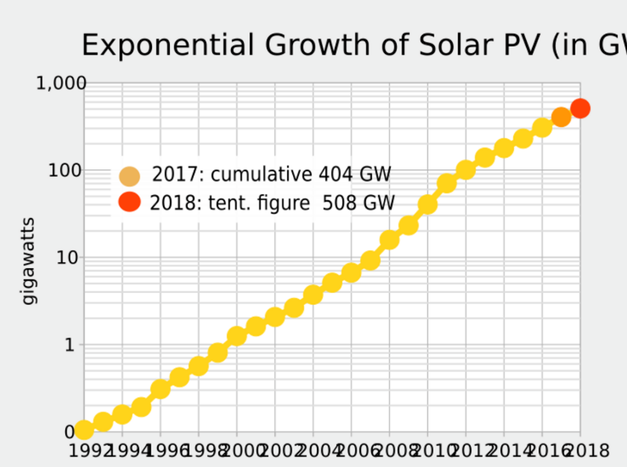 In the mid-1990s development of both, residential and commercial rooftop solar as well as utility-scale photovoltaic power stations began to accelerate again due to supply issues with oil and natural gas, global warming concerns, and the improving economic position of PV relative to other energy technologies.[34][39] In the early 2000s, the adoption of feed-in tariffs—a policy mechanism, that gives renewables priority on the grid and defines a fixed price for the generated electricity—led to a high level of investment security and to a soaring number of PV deployments in Europe.