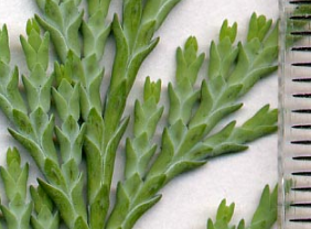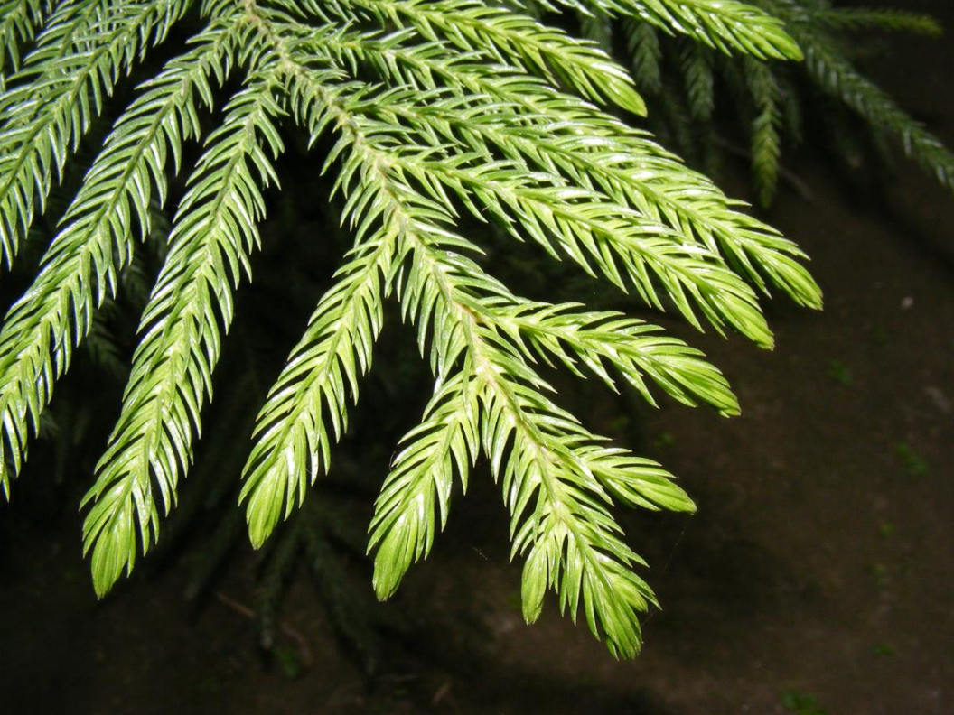 Since most conifers are evergreens,[10] the leaves of many conifers are long, thin and have a needle-like appearance, but others, including most of the Cupressaceae and some of the Podocarpaceae, have flat, triangular scale-like leaves. Some, notably Agathis in Araucariaceae and Nageia in Podocarpaceae, have broad, flat strap-shaped leaves. Others such as Araucaria columnaris have leaves that are awl-shaped. In the majority of conifers, the leaves are arranged spirally, exceptions being most of Cupressaceae and one genus in Podocarpaceae, where they are arranged in decussate opposite pairs or whorls of 3 (−4). In many species with spirally arranged leaves, such as Abies grandis (pictured), the leaf bases are twisted to present the leaves in a very flat plane for maximum light capture. Leaf size varies from 2 mm in many scale-leaved species, up to 400 mm long in the needles of some pines (e.g. Apache Pine, Pinus engelmannii). The stomata are in lines or patches on the leaves, and can be closed when it is very dry or cold. The leaves are often dark green in colour, which may help absorb a maximum of energy from weak sunshine at high latitudes or under forest canopy shade. Conifers from hotter areas with high sunlight levels (e.g. Turkish Pine Pinus brutia) often have yellower-green leaves, while others (e.g. blue spruce, Picea pungens) have a very strong glaucous wax bloom to reflect ultraviolet light. In the great majority of genera the leaves are evergreen, usually remaining on the plant for several (2–40) years before falling, but five genera (Larix, Pseudolarix, Glyptostrobus, Metasequoia and Taxodium) are deciduous, shedding the leaves in autumn and leafless through the winter.[10] The seedlings of many conifers, including most of the Cupressaceae, and Pinus in Pinaceae, have a distinct juvenile foliage period where the leaves are different, often markedly so, from the typical adult leaves.