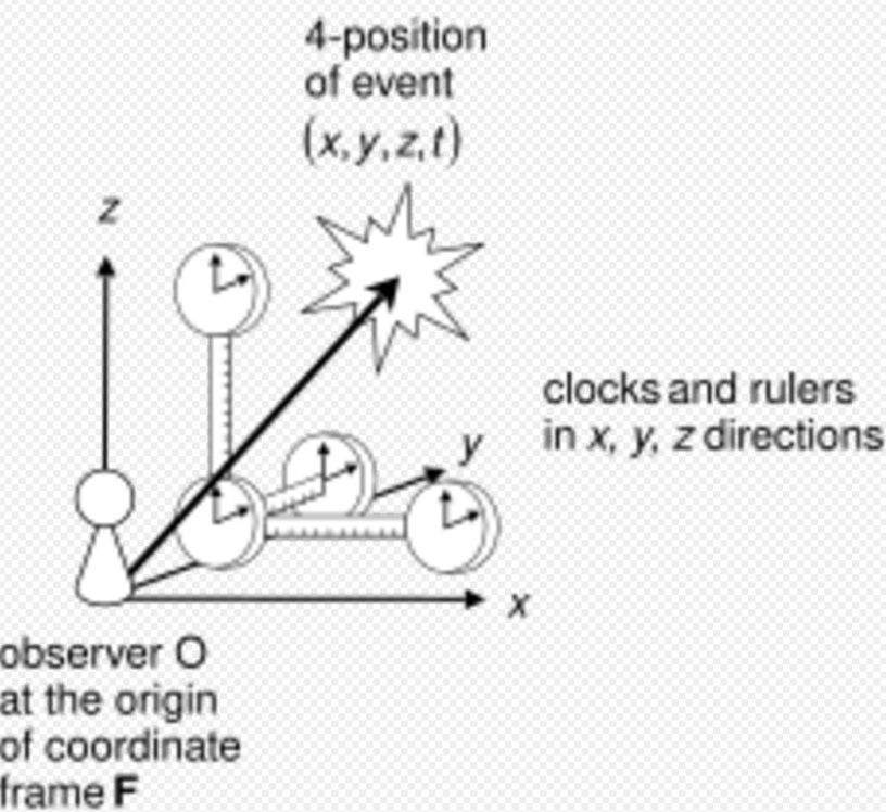 | “ | The idea of a reference frame is really quite different from that of a coordinate system. Frames differ just when they define different spaces (sets of rest points) or times (sets of simultaneous events). So the ideas of a space, a time, of rest and simultaneity, go inextricably together with that of frame. However, a mere shift of origin, or a purely spatial rotation of space coordinates results in a new coordinate system. So frames correspond at best to classes of coordinate systems. | ” |